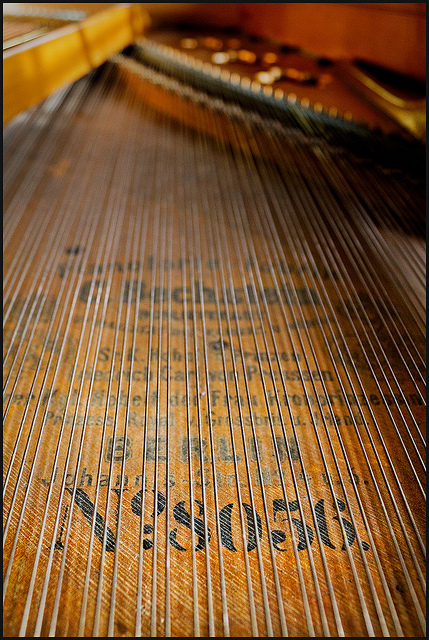 After far too much time spent on keyboards in Logic samples stored as binary codes in this whirring Mac beside me the inexplicable acoustic power of a hundred-and-thirty-nine-year-old German grand piano strings copper wound by now-antiquated machines and hammers voiced by delicate hands nearly a century-and-a-half ago the soundwaves upon soundwaves multiplying on top of each other until nearly exploding is an absolutely phenomenal sensation to behold.